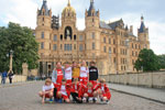 [/foto][titel]Die mE-Jugend beim Turnier in Schwerin[/titel][ausrichtung]right[/ausrichtung]Durch eine längere Spielpause innerhalb des ersten Turniertages erhielten wir die Chance, auch mal nach Schwerin hereinzufahren und uns ein Eis bei der doch sehr warmen Witterung zu gönnen. Die Zeit wurde genutzt, um am Schweriner Schloß vorbei zu schauen und den Kindern ein wenig Kultur zu bieten.Nachdem wir uns nach dem Stadtbesuch dann wieder in der Sporthalle dem Handball gewidmet hatten, konnten wir uns beim großen Grillabend mit allen Mannschaften am Buffet stärken. Da an diesem Tag auch ein wichtiges Spiel des FC Bayern München stattfand, wollten die Kinder dann allerdings schnell wieder in die Jugendherberge, um dieses zu sehen. Dort stellten wir allerdings fest, dass dort der Sender nicht empfangen werden konnte. Mitgereiste Eltern hatten in der Schweriner Innenstadt eine Beach Bar ausgemacht, wo auch live übertragen wurde. Also hieß es für alle zusammen wieder die Bullis befüllen und los. In ausgelassener Stimmung konnten dann alle zusammen diesen Tag ausklingen lassen.