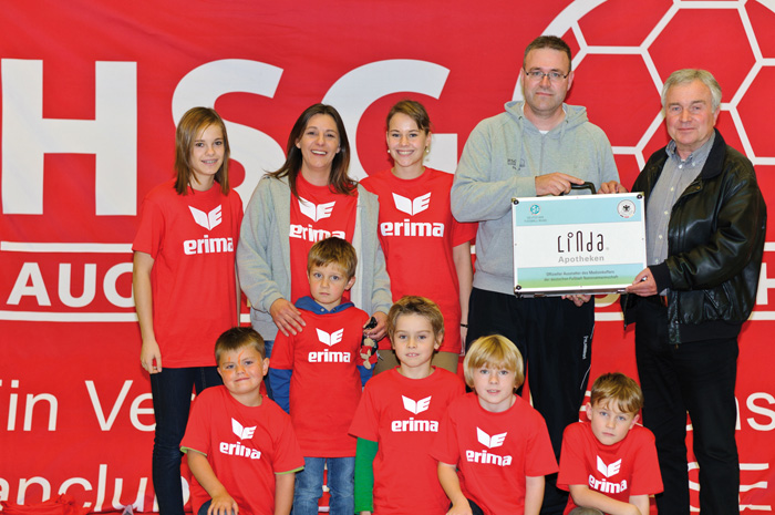 Vor dem letzten Heimspiel der Oberliga gegen den VfL Gladbeck übergab Reinhard Balke, Inhaber der Linda Heide-Apotheke in Augustdorf, den von der Linda Heide-Apotheke gespendeten LINDA DFB-Medizinkoffer an die Jugendwarte der HSG Augustdorf / Hövelhof Daniela Trojak und Sven Emmeluth.Seit dem 1. Dezember 2010 können sich Amateurvereine mit dem Profi-DFB-Medizinkoffer ausstatten, der im Originaldesign und mit einer medizinischen Vollausstattung sicherstellt, dass im Ernstfall alles für eine professionelle Versorgung zur Verfügung steht. Abseits des Profisports ist die Notfallausrüstung oftmals sehr begrenzt, meist müssen die Sportler sich mit Eisspray und Pflaster zufrieden geben.