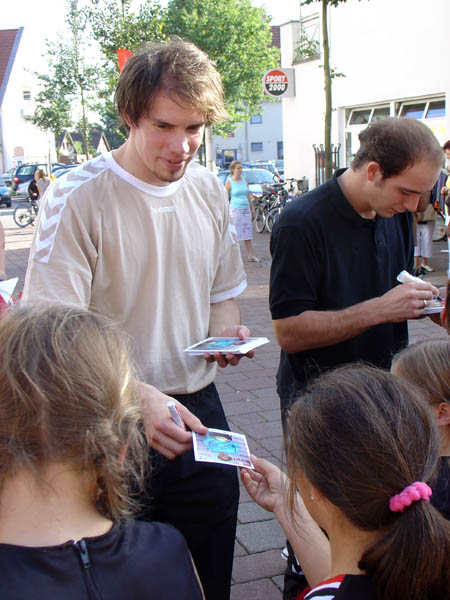 Als die Autogrammkarten vergriffen waren, ging es auf Hallenheften weiter.