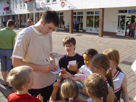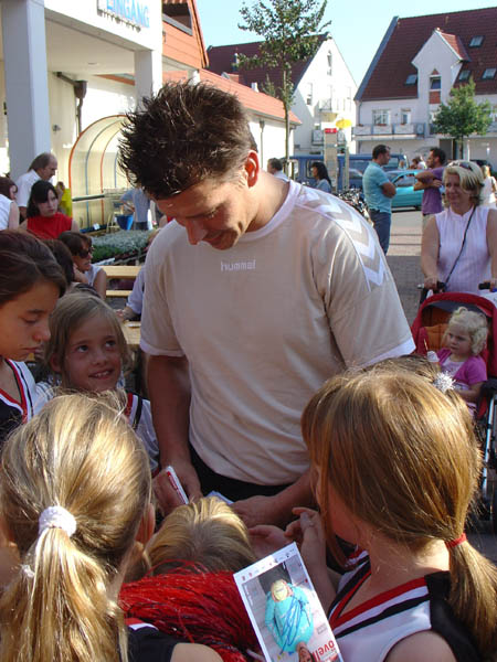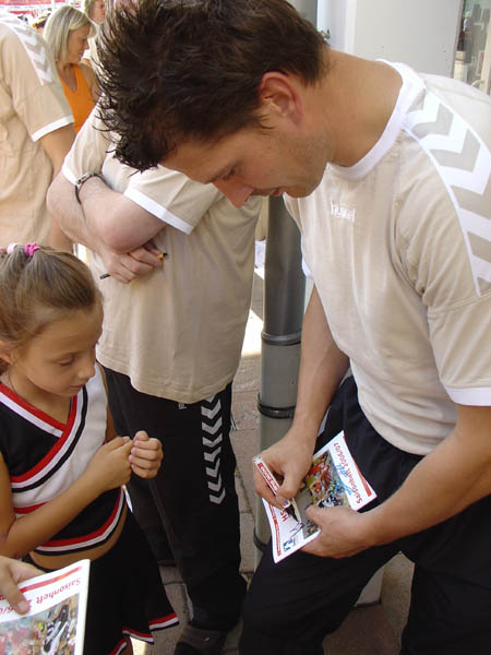 Im Rahmen des Sommerfestes der Einzelhändler in Schloß Holte-Stukenbrock fand heute eine Autogrammstunde mit einigen Musketieren statt. Bei sommerlichen Temperaturen von 27° wurde die Aktion in der Schloß Holter Fußgängerzone von Auftritten der Cheerleader begleitet. Es dauerte nicht lange, bis alle Karten vergriffen waren.