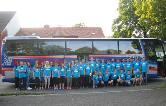 Am 06. Juli startete die Fahrt nach Dronninglund, dieses mal pünktlich, um 21.00 Uhr. Bei diesem Turnier kamen 202 Mannschaften aus 16 Nationen zusammen um Handball zu spielen. Nach einer anstrengenden Busfahrt kamen wir gegen 07.00 Uhr in Dronninglund an. Die Freude war groß als feststand, dass wir auch dieses mal wieder in der Schule in Hjallarup, sogar in den selben Zimmern, untergebracht waren. In der Schule waren viele Spielerinnen und Spieler aus verschiedenen Nationen, wie Norwegen, der Schweiz, aber auch aus Bangladesch untergebracht. [foto=../picpool/news/2014_dronninglund_einlauf.jpg]